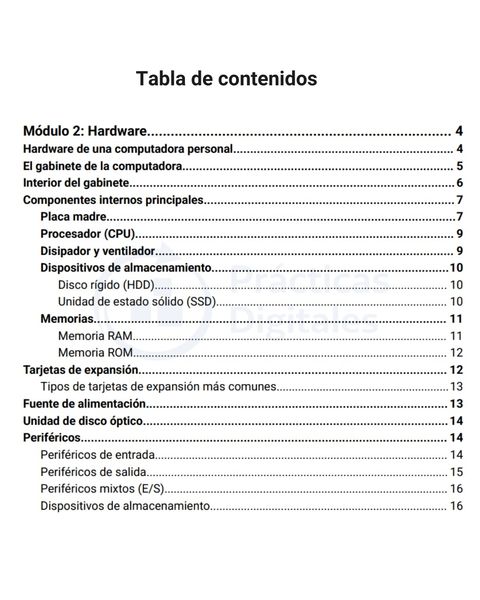 Material educativo en PDF sobre componentes físicos de la computadora. Placa madre, procesador (CPU), memorias, dispositivos de almacenamiento.